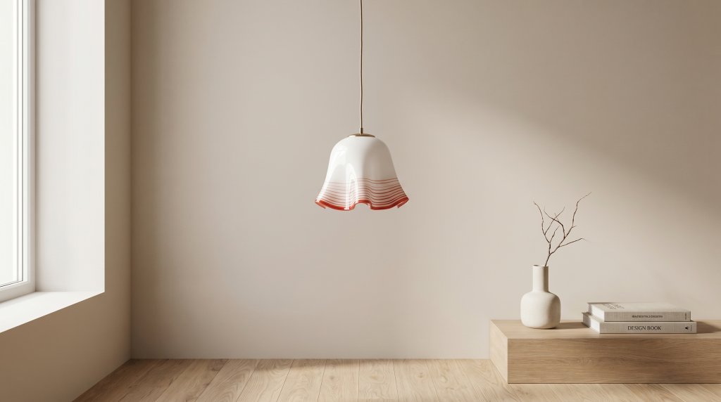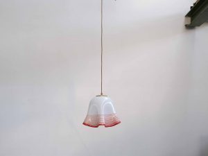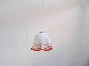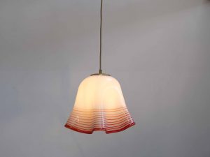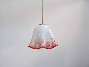 Die Bellora Pendelleuchte ist ein stilvolles Vintage Designobjekt aus Italien und stammt aus den 1960er–70er Jahren. Gefertigt aus mundgeblasenem Glas, überzeugt sie durch ihre weich fließende Form sowie die charakteristischen, fein eingeschmolzenen Linien in warmem Rot, die dem Entwurf eine besondere Tiefe und Lebendigkeit verleihen.