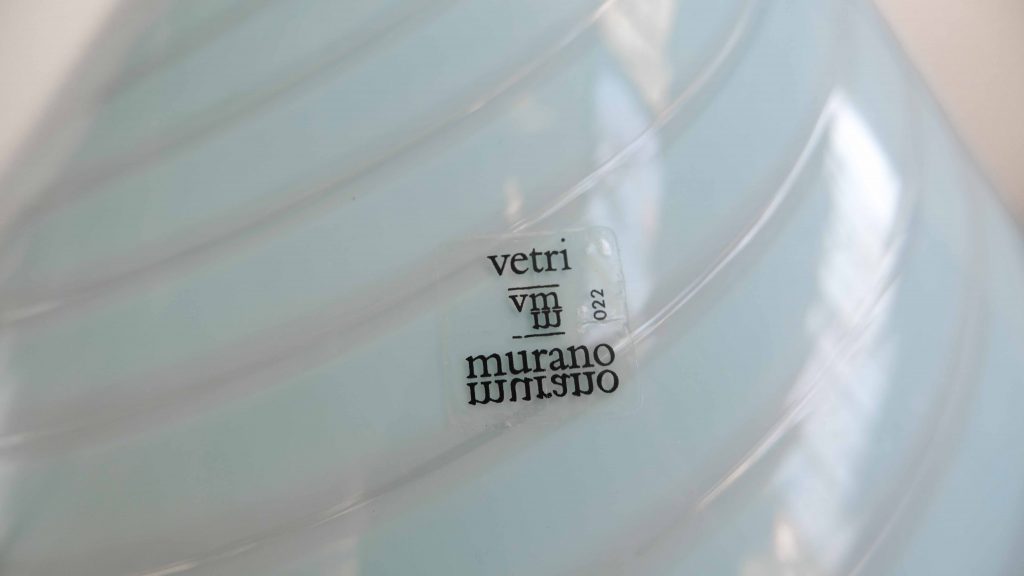 Der fein strukturierte Glasschirm mit sanfter Riffelung verleiht der Oberfläche Tiefe und sorgt für ein angenehm diffuses, warmes Licht. Typisch für Murano Glas ist die lebendige Farbwirkung und die handwerkliche Verarbeitung, die jede Leuchte zu einem Unikat macht.