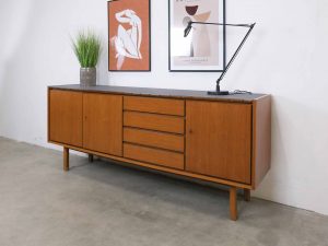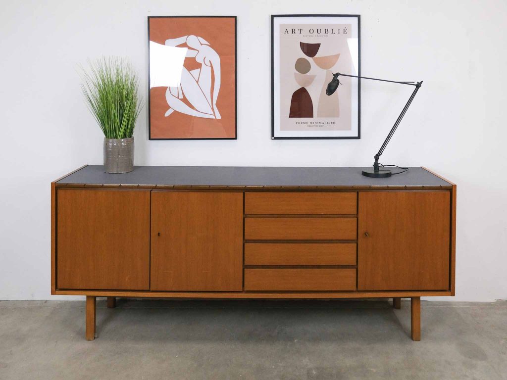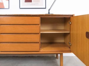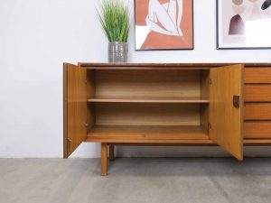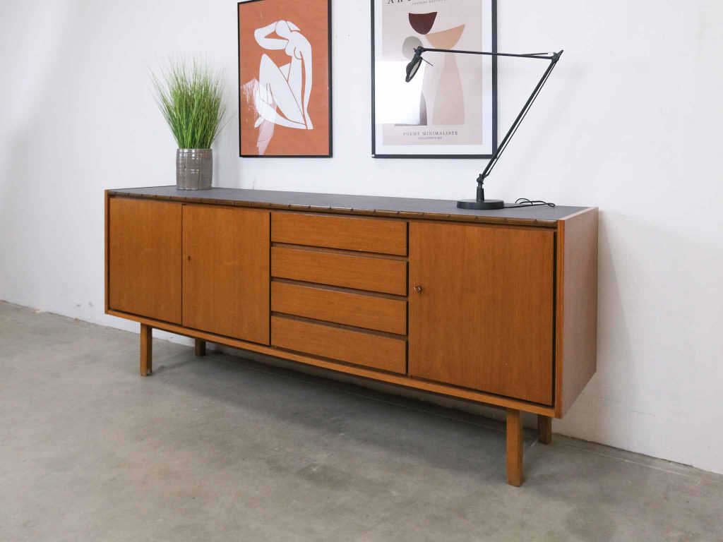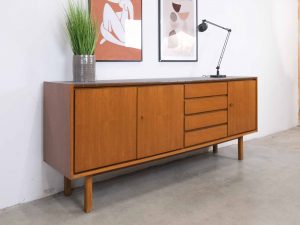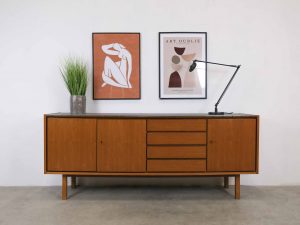 Die BRÆTNING Sideboard kombiniert klassisches skandinavisches Design mit funktionaler Eleganz. Die klaren Linien, die warmen Holztöne und die ausgewogene Aufteilung aus Türen und Schubladen machen dieses Sideboard zu einem vielseitigen Möbelstück für Wohn-, Ess- oder Arbeitsbereich. Im Inneren bietet es großzügigen Stauraum für Geschirr, Textilien oder Alltagsgegenstände. Die Oberseite wurde von uns sorgfältig und hochwertig foliert, um eine robuste, pflegeleichte und moderne Oberfläche zu schaffen, die sich harmonisch ins Gesamtbild einfügt. BRÆTNING ist ideal für alle, die Wert auf nordische Ästhetik und langlebige Qualität legen.