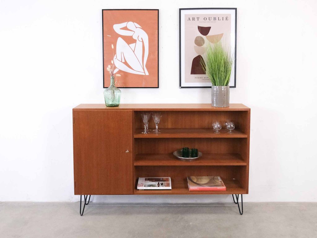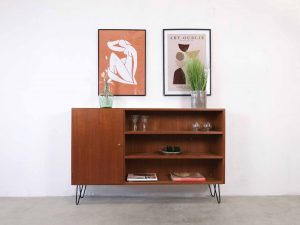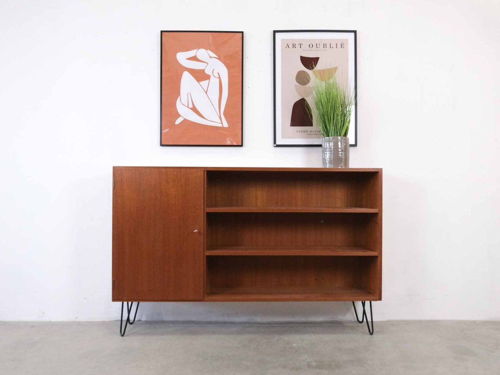 Das Dalsen Sideboard ist ein authentisches Vintage Sideboard aus Teak aus Dänemark und stammt aus der ikonischen Mid-Century Era. Mit seiner warmen Teakholz-Oberfläche, den klaren Linien und der typisch skandinavischen Formensprache verkörpert es zeitloses dänisches Design der 50er–60er Jahre. Die Kombination aus offener Ablage und geschlossener Tür bietet vielseitigen Stauraum und macht das Möbelstück ideal für Wohnräume, Büros oder Designstudios. Als echtes Mid-Century Original bringt das Dalsen Sideboard Charakter, Qualität und nordische Ästhetik in jeden Raum – perfekt für Liebhaber skandinavischer Vintage-Möbel und nachhaltiger Einrichtung.