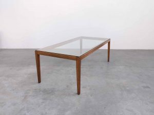 Ideal für alle, die einen Couchtisch aus Holz und Glas im Mid Century Stil suchen oder ihr Zuhause mit einem zeitlosen Vintage Designklassiker bereichern möchten