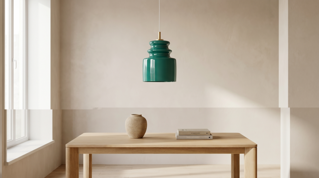 Typisch für italienisches Design dieser Zeit verbindet die Pendelleuchte Funktionalität mit dekorativer Raffinesse. Die kräftige Farbgebung setzt gezielte Akzente im Raum, ohne dabei aufdringlich zu wirken, und harmoniert sowohl mit minimalistischen als auch mit warmen Interior-Konzepten.