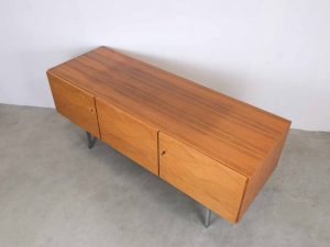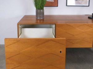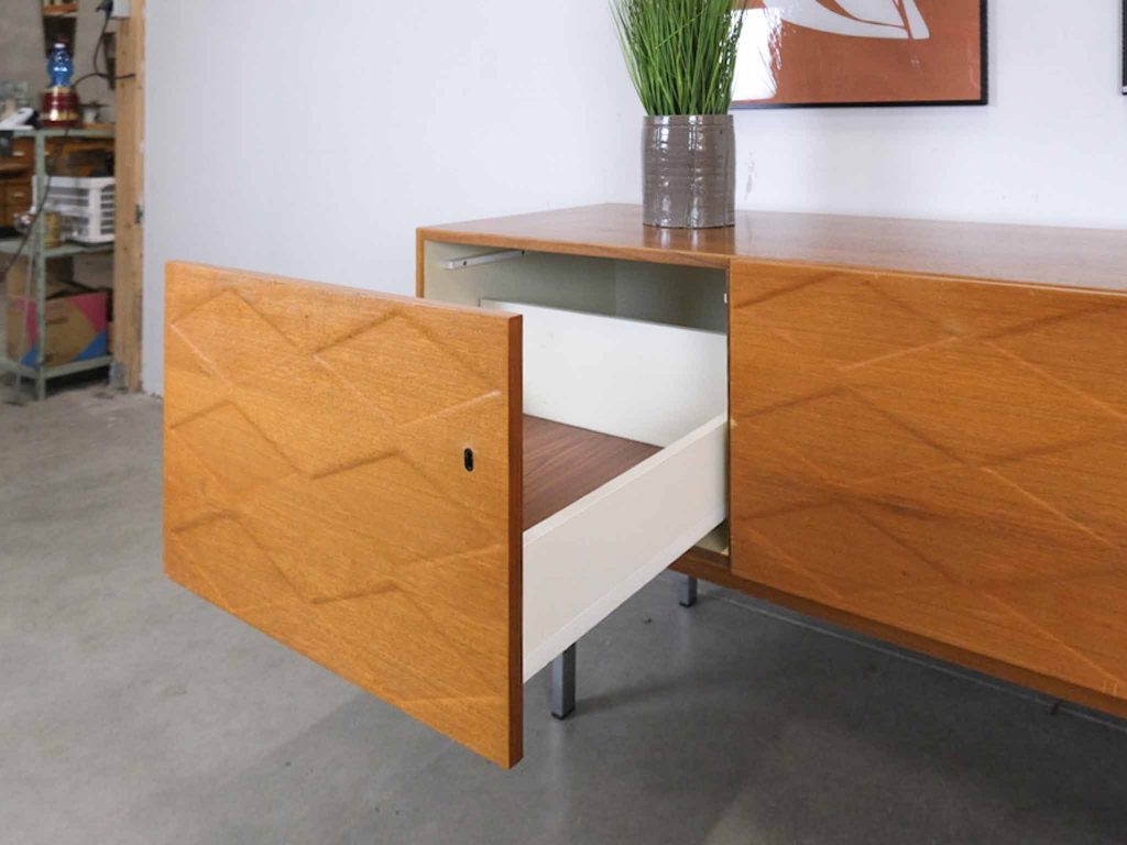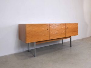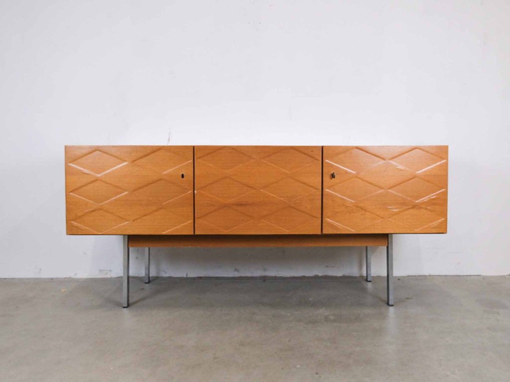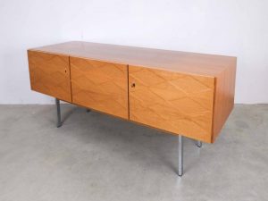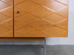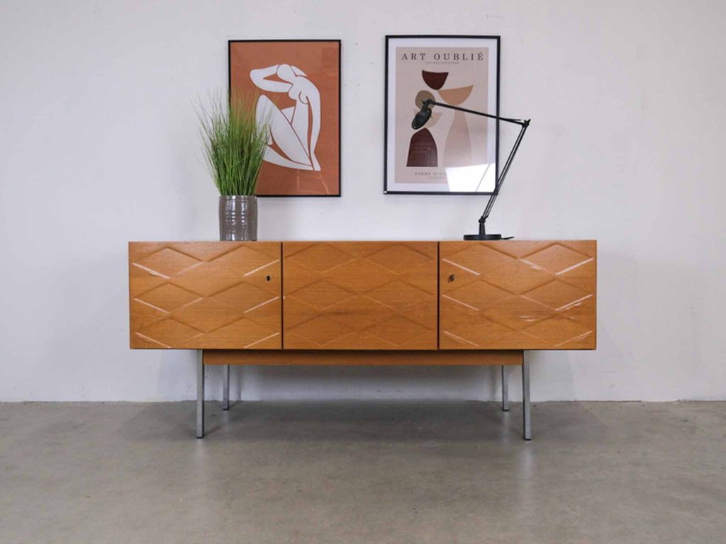 Die Haldren Kommode ist ein authentisches Vintage Möbelstück aus der Mid-Century Ära und verbindet skandinavische Formensprache mit zeitloser Eleganz. Ihr warmes Holzfinish, die charakteristische Diamantfräsung und die klaren Linien machen sie zu einem markanten Highlight in jedem Wohnraum. Die Kommode bietet großzügigen Stauraum für Wohnaccessoires und passt ideal in moderne wie auch klassische Interieurs. Dank der stabilen Metallbeine wirkt das Design leicht und zugleich hochwertig. Die Haldren Kommode ist ein stilvolles Statement für alle, die echte Mid-Century Ästhetik, langlebige Qualität und skandinavische Wohnkultur schätzen. Perfect für Wohnzimmer, Flur oder Homeoffice.
