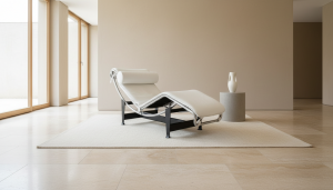 Das verchromte Stahlrohrgestell bildet einen markanten Kontrast zur hellen Lederauflage und unterstreicht den technischen Charakter des Designs.
