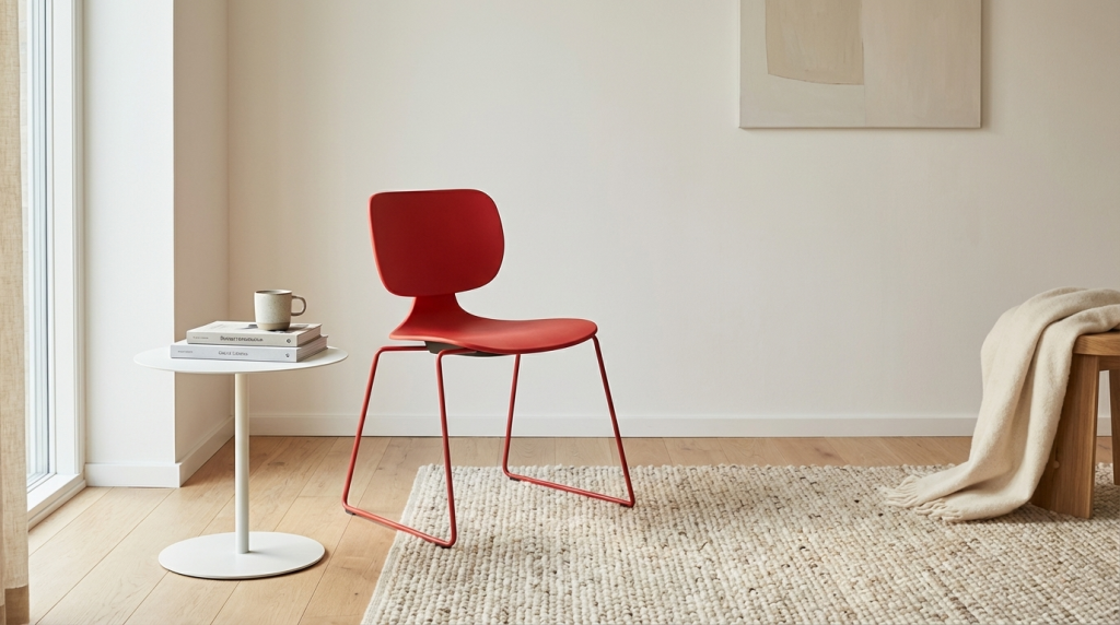 Die ergonomisch geformte Sitzschale bietet angenehmen Sitzkomfort und unterstützt eine natürliche Sitzhaltung. In Kombination mit dem filigranen Kufengestell aus pulverbeschichtetem Stahl entsteht ein stabiler und gleichzeitig leichter Gesamteindruck. Die klare Linienführung und die reduzierte Gestaltung machen den Stuhl vielseitig einsetzbar – ob im Essbereich, im Büro, im Konferenzraum oder als moderner Akzent im Wohnraum.