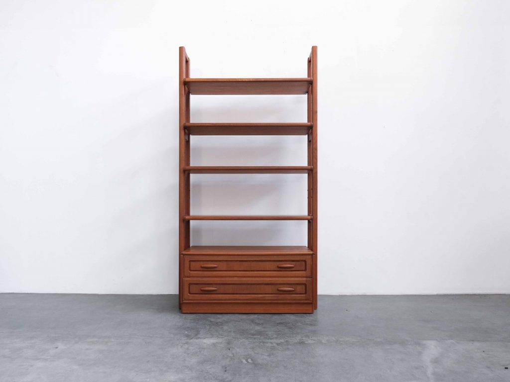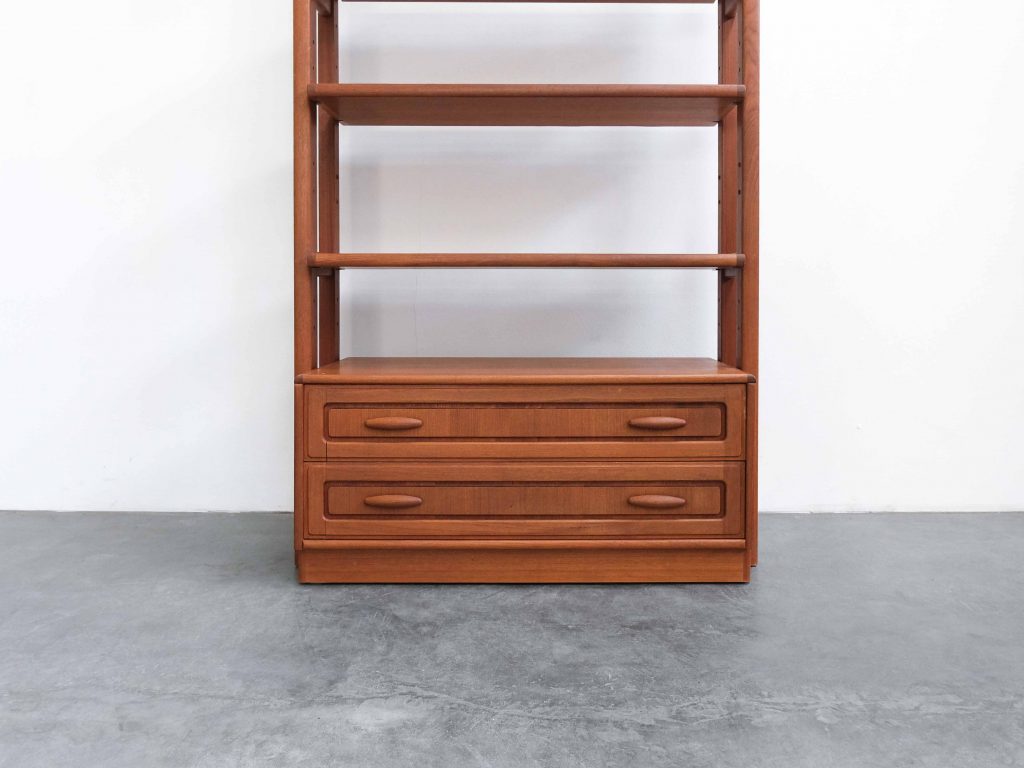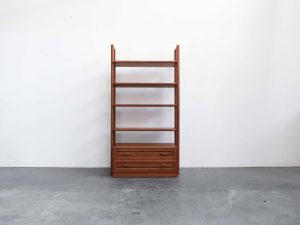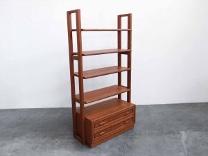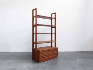Das Lindøra Regalsystem ist ein vielseitiges Vintage Möbelstück aus der Mid Century Ära und überzeugt durch seine klare, funktionale Gestaltung sowie die warme Ausstrahlung von hochwertigem Teakholz. Gefertigt vom renommierten dänischen Hersteller Dyrlund steht dieses Möbel für präzise Verarbeitung und zeitloses skandinavisches Design.