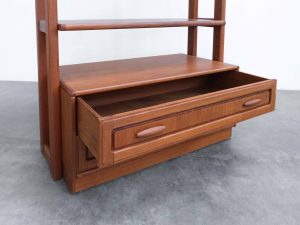 Das Regalsystem wurde von uns sorgfältig aufgearbeitet und befindet sich in einem sehr guten Vintage Zustand mit leichten, altersbedingten Gebrauchsspuren, die den authentischen Charakter unterstreichen.