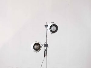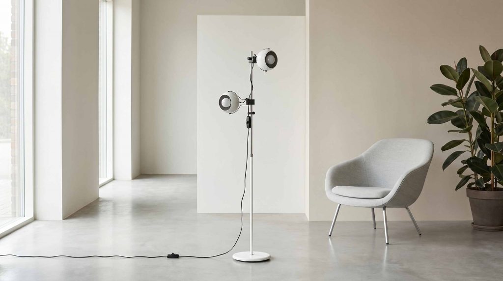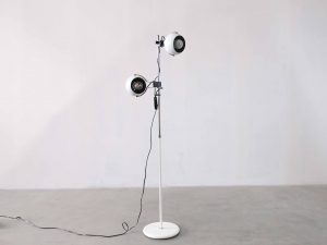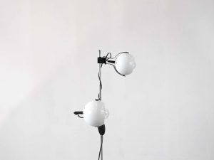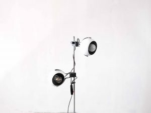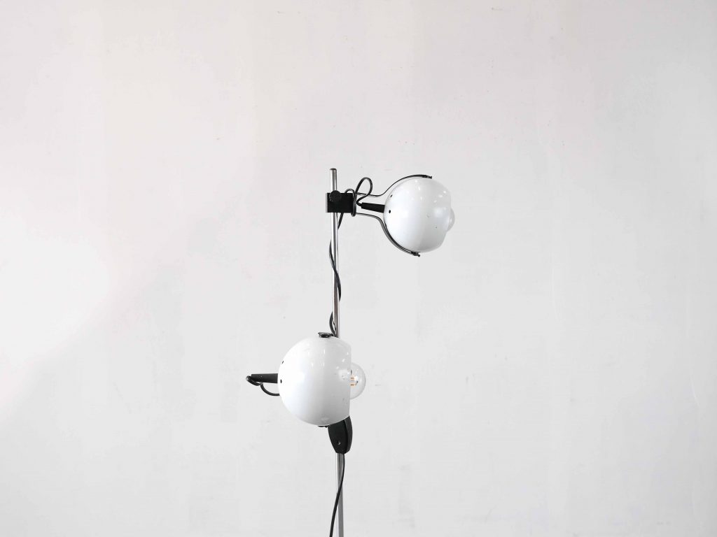 Die LUMORA Spot Floor Lamp ist eine charakterstarke Vintage Stehleuchte aus der Space Age Ära und überzeugt durch ihre funktionale Konstruktion sowie ihr ikonisches Design. Die Kombination aus verchromtem Gestänge, weiß lackierten Elementen und den kontrastreichen schwarz-weißen Kugelspots verleiht der Leuchte eine technisch-elegante Ausstrahlung.