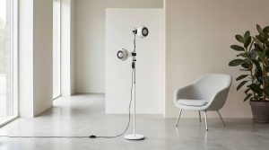 Besonders prägend sind die zwei flexibel ausrichtbaren Leuchtenköpfe, die eine gezielte Lichtführung ermöglichen. Dadurch eignet sich die Lampe sowohl als atmosphärische Lichtquelle als auch für funktionale Beleuchtung – ideal für Wohnbereiche, Studios oder moderne Arbeitsumgebungen.