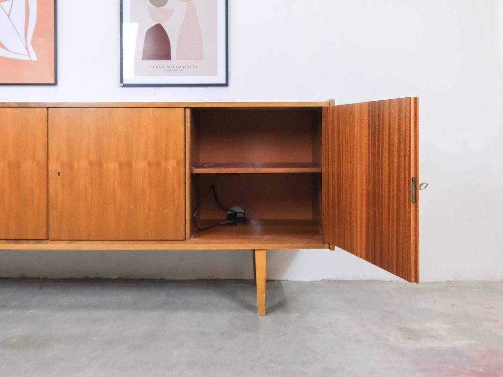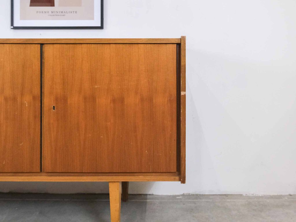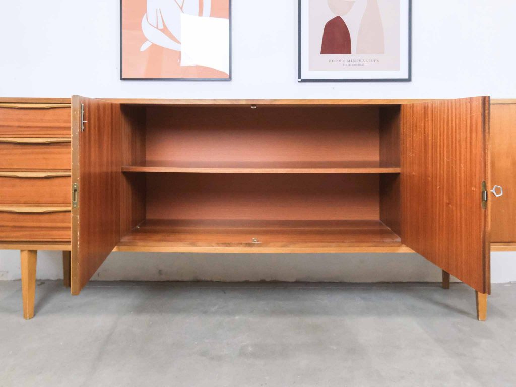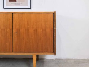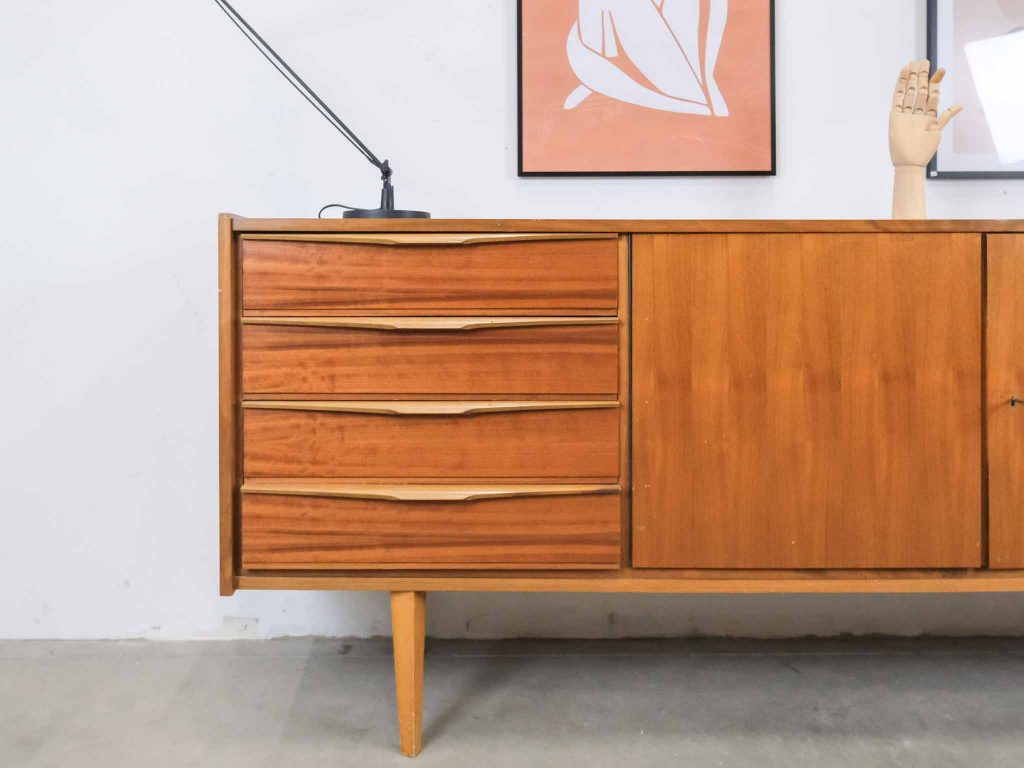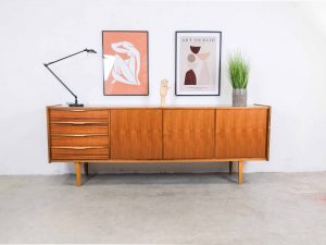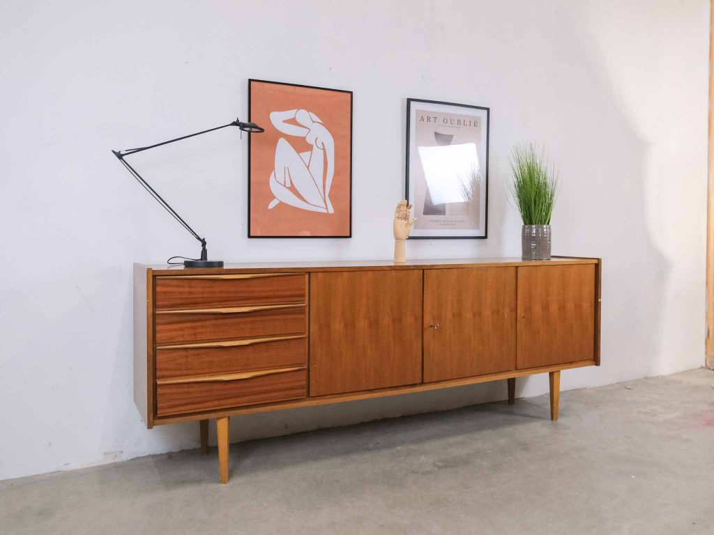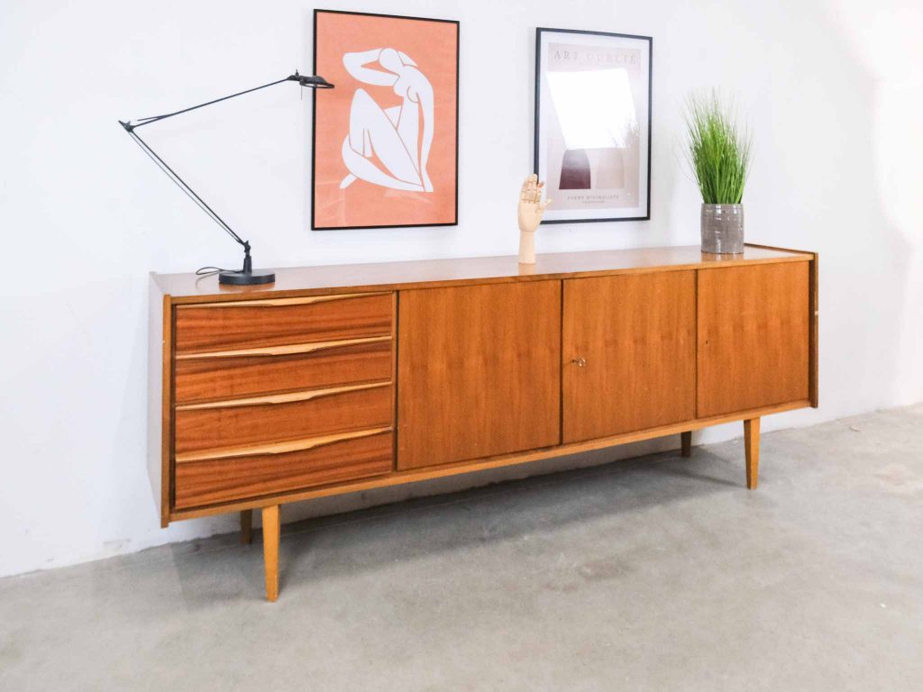 Das Sideboard NØRLEV ist ein elegantes Möbelstück aus der Midcentury Ära und gehört zu den echten Klassikern des Vintage Designs. Mit seinen funktionalen Schubladen und großzügigen Stauräumen bietet es viel Platz für Geschirr, Bücher oder Wohnaccessoires. Die warmen Holztöne strahlen Natürlichkeit aus, während die klaren Linien den typischen skandinavischen Stil der 1950er und 1960er Jahre widerspiegeln. NØRLEV fügt sich nahtlos in moderne wie klassische Einrichtungen ein und verleiht jedem Raum einen zeitlosen Charakter. Dieses Vintage Midcentury Sideboard verbindet Funktionalität mit hochwertigem Design und ist ein echtes Highlight für Liebhaber skandinavischer Möbelkultur.