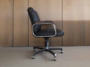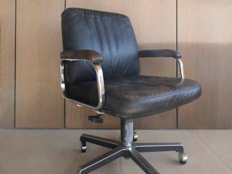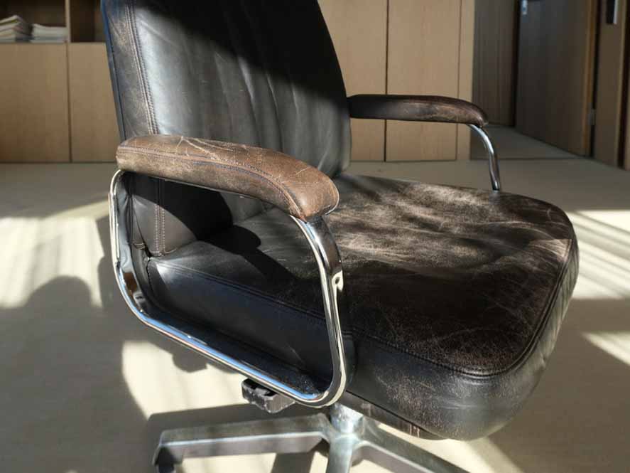 Besonders hervorzuheben ist die klassische Formsprache der 1960er bis 1970er Jahre, die den Sessel zu einem authentischen Vertreter des deutschen Bürodesigns macht. Die sichtbare Patina im Leder sowie leichte Gebrauchsspuren erzählen die Geschichte des Möbelstücks und verleihen ihm zusätzlichen Charakter.