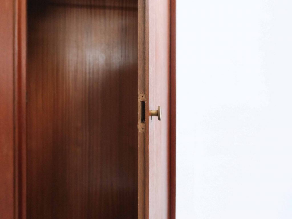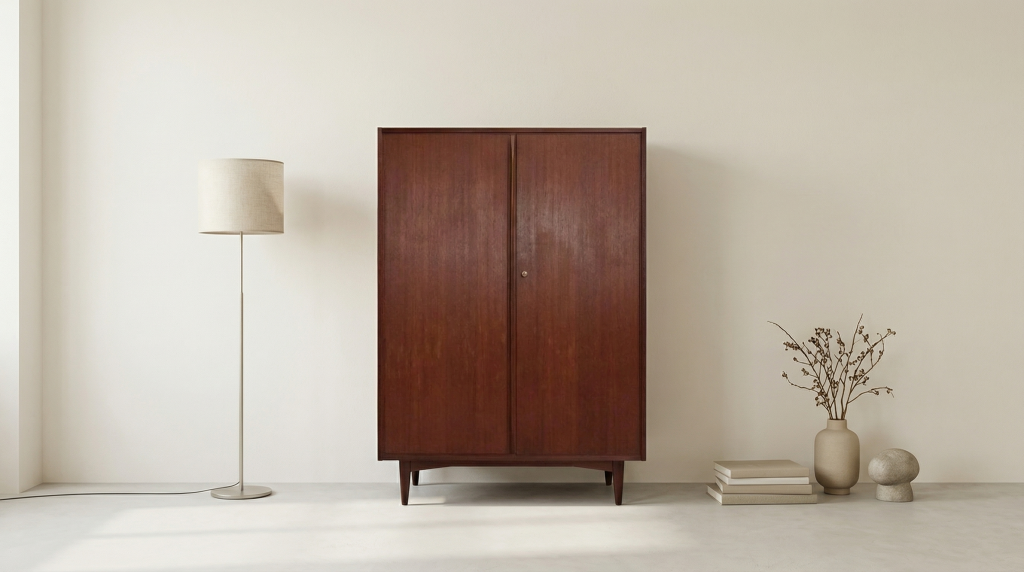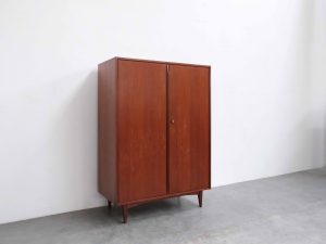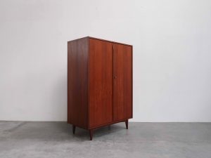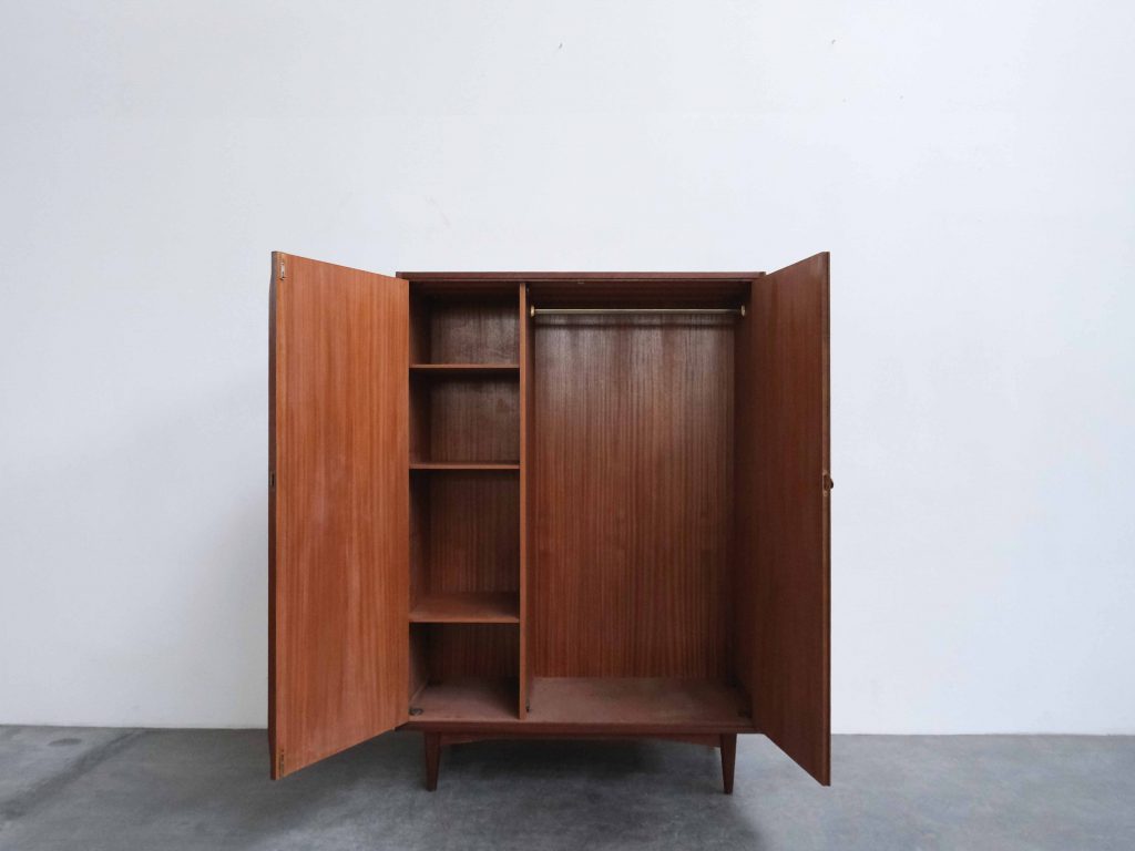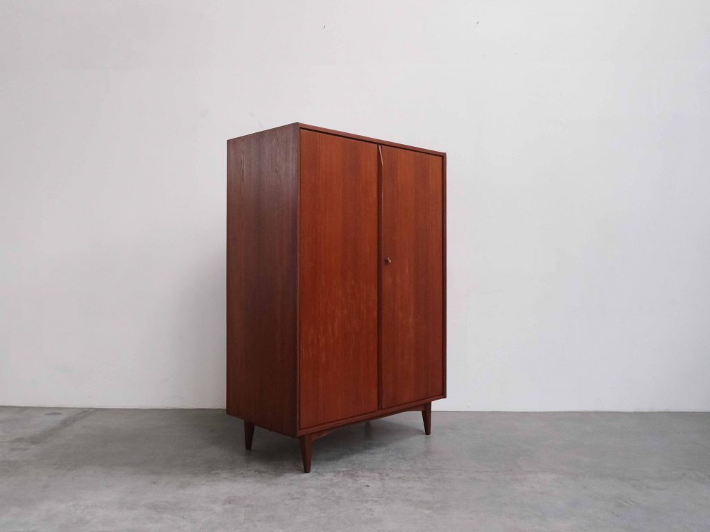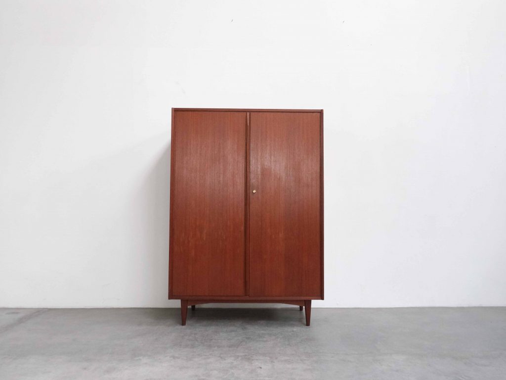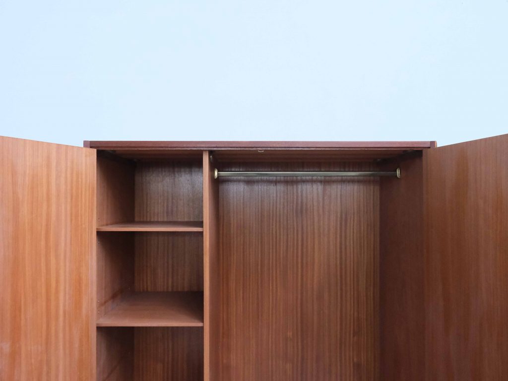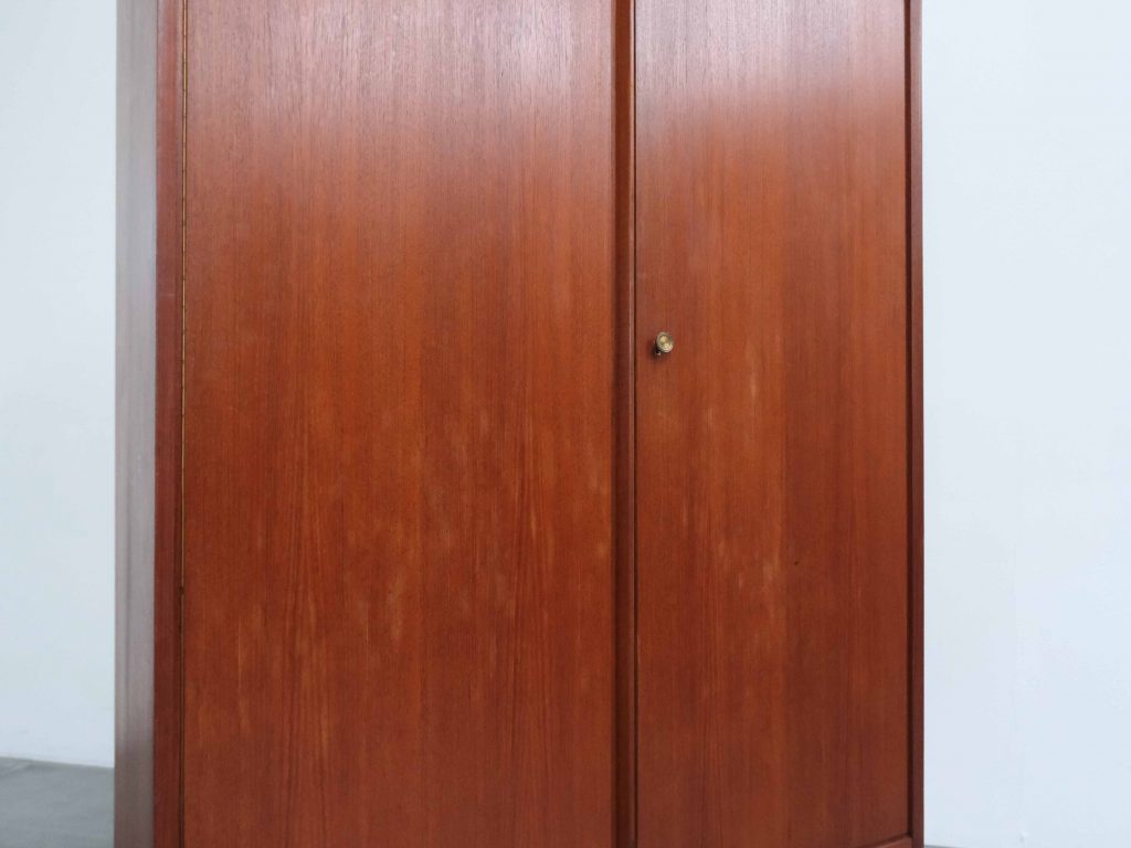 Dänischer Kleiderschrank aus Teakholz mit klarer, funktionaler Innenaufteilung und zeitloser Formensprache.