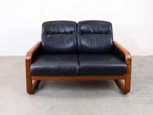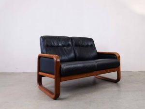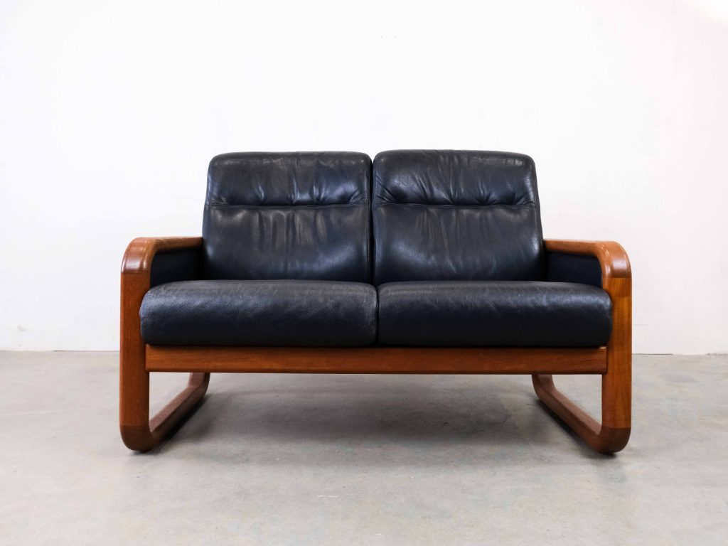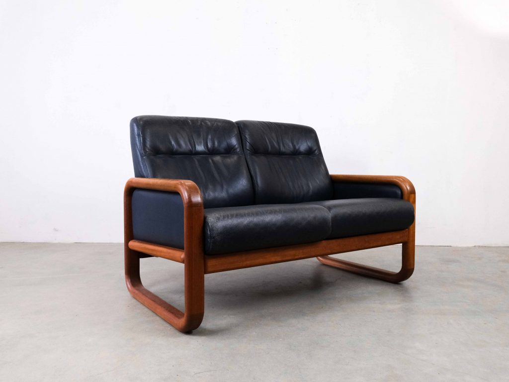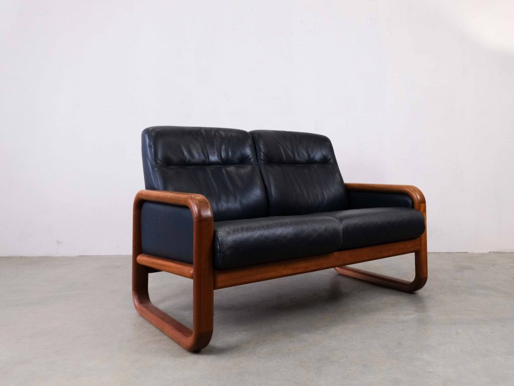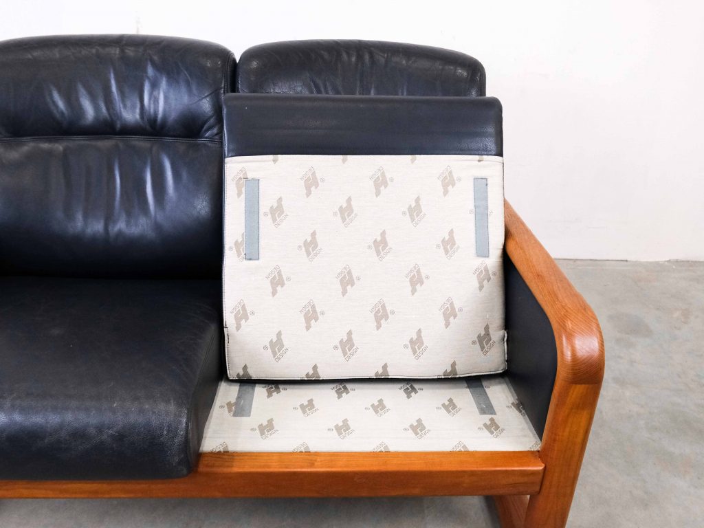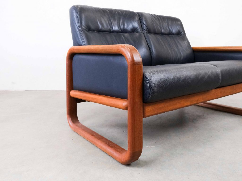 Die großzügigen Sitz- und Rückenpolster sorgen für hohen Komfort, während die klare Linienführung typisch für skandinavisches Design ist. Das Leder zeigt eine schöne, authentische Patina, die den Vintage-Charakter zusätzlich unterstreicht.